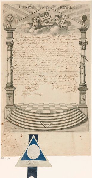 Hendrick Danckerts created this print in 1647, to be used as the title page for a series of antiquities discovered on the beach of Walcheren. During the 17th century, the Dutch Republic experienced a surge of national pride, fueled by its burgeoning maritime power and cultural achievements. The discovery of ancient artifacts resonated deeply within this context, evoking a shared connection to the land's distant past and contributing to a sense of collective identity. The objects are described in detail on the print, below a heraldic shield featuring a sea monster-like creature. This shield suggests an effort to assert a cultural or historical legitimacy. Danckerts' print subtly weaves together themes of national identity, historical curiosity, and civic pride, reflecting the complex interplay of cultural forces shaping Dutch society.