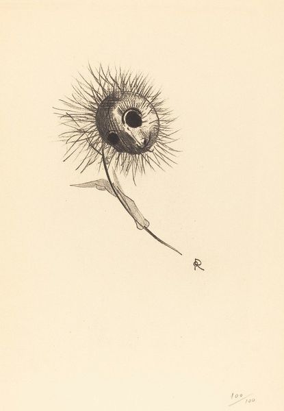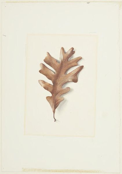 Curator: This is "Peacock Feather," a watercolor by Charles Herbert. It’s a small work, only about 30 centimeters tall. My first impression is its stillness, a quiet, almost reverent study. Editor: Reverent, yes, but also a little melancholic, don't you think? The feather, isolated, evokes a sense of loss, like a relic of something grander now absent. Curator: Its formalism is compelling. Notice how Herbert uses the delicate gradations of color to define form and texture. The eye of the feather is almost jewel-like, drawing the viewer in. Editor: It feels like a memento mori, a reminder of fleeting beauty. The detail suggests a desire to capture and preserve the ephemeral. Curator: Indeed. The artwork functions as a symbolic meditation on beauty, and transience itself. Editor: Beautiful and brief, like the life of a peacock, or any of us, I suppose. A perfect little painting.