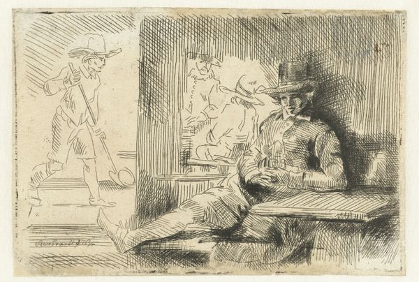 Johannes Tavenraat sketched this "Liggende Jager," or reclining hunter, with pen in the 19th century. The hunter, lounging casually, is equipped with a long gun, a symbol of power and survival deeply embedded in human history. Consider the gun not merely as a tool for hunting but as an emblem. Weapons feature prominently across cultures, from ancient deities wielding thunderbolts to Renaissance paintings of triumphant warriors. This symbol of the hunt taps into our collective memory, recalling the primal need to secure resources and defend territory, linking us to our ancestors. The hunter's relaxed pose presents a certain dichotomy. Is he resting, or is he waiting? The line between repose and readiness blurs, creating a tension that resonates with our own subconscious awareness of threat and security. This image is not merely a snapshot of a hunter but a reflection of our own, deeply rooted anxieties and instincts. The symbol is a potent reminder of the cyclical nature of human experience.
