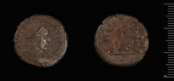 Curator: The Harvard Art Museums hold this fascinating coin attributed to Abd-al-Malik of the Umayyads, known as Coin of Herakleios. Editor: It feels weighty, you know? Like holding a little piece of history that's been passed through so many hands. Curator: The means of production are fascinating: consider the die-striking, the circulation of this metal, the networks it activated. Editor: I see a faint, regal profile... burdened, maybe. Like it's carrying the weight of an empire right there on its little copper face. Curator: This coin represents a key moment in the Umayyad dynasty's assertion of economic power, challenging Byzantine currency. Editor: It's a funny thing, isn't it, how something so small can tell such a big story? Curator: Absolutely. A material testament to cultural and economic shifts. Editor: Gives you a lot to think about, doesn't it?