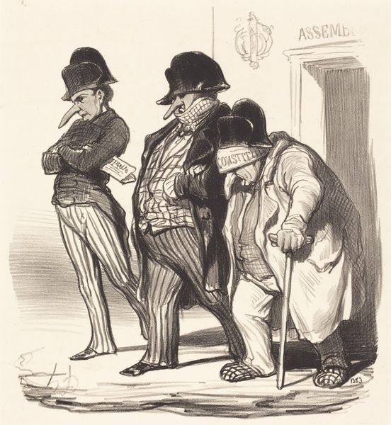 This is a lithograph by Honoré Daumier, a French artist known for his satirical commentary on 19th-century French society. Here, Daumier presents us with three figures gazing upwards at a building. The caption translates to "There, here's Mr. Godard again, leaving the Hippodrome and taking his floor away on the fourth floor... I wouldn't want to be the concierge for this owner!" Through this image, Daumier critiques the rapid urban development and speculative property markets of Paris at the time. The Hippodrome was a symbol of entertainment and leisure for the wealthy, and Godard’s upward mobility reflects a changing social landscape. To fully appreciate Daumier's work, we need to delve into the political and economic conditions of 19th-century France. Contemporary newspapers, political pamphlets, and architectural plans all provide context for this image of social commentary.