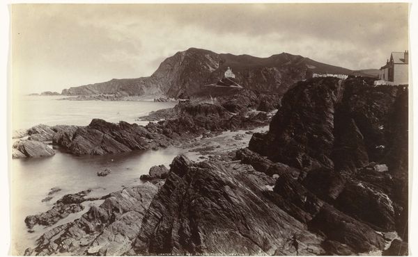Editor: Here we have Isaiah West Taber's "Fort Point, San Francisco," a sepia-toned photograph. It feels so serene, almost like a historical record frozen in time. What do you see in this piece? Curator: This image isn't just about aesthetics; it's a loaded portrayal of Manifest Destiny and westward expansion. Consider the military architecture of Fort Point alongside the promise of maritime traffic. Whose stories are centered, and whose are erased in this vision of progress? Editor: So, it's not just a landscape, but a statement about power? Curator: Precisely. It invites us to question the narratives embedded in these seemingly objective depictions of westward settlement. What do you think? Editor: I never thought about it that way, there's so much more than what meets the eye. Thank you. Curator: You're welcome. Considering art through this lens encourages critical engagement with the past and its lasting impact.