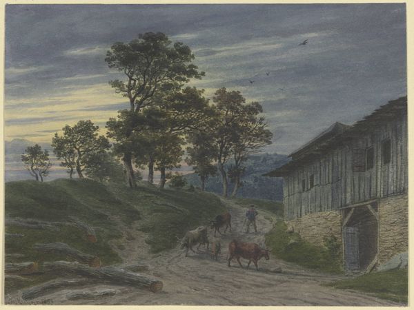This detailed landscape, Schneid- und Mahlmühle im Stickelberger Tal unweit der Wienerischen Neustadt an der ungarischen Grenze, was created by Johann Adam Klein. The composition employs a structured arrangement with buildings and watermills balanced on either side of the animals. The use of muted colors, particularly soft greens and browns, creates a serene, pastoral atmosphere. Klein’s meticulous attention to detail is evident in the rendering of the mill’s wooden structures and the textural differences between the foliage and stone. The mill serves as a focal point, drawing attention to the interrelation between nature and industrial elements. The scene suggests a commentary on the integration of human industry within the natural landscape. The way Klein uses line and form invites consideration of how we construct meaning through the careful observation of formal elements. It’s this very structure that conveys a deeper understanding of the cultural values inherent in Klein’s artistic production.