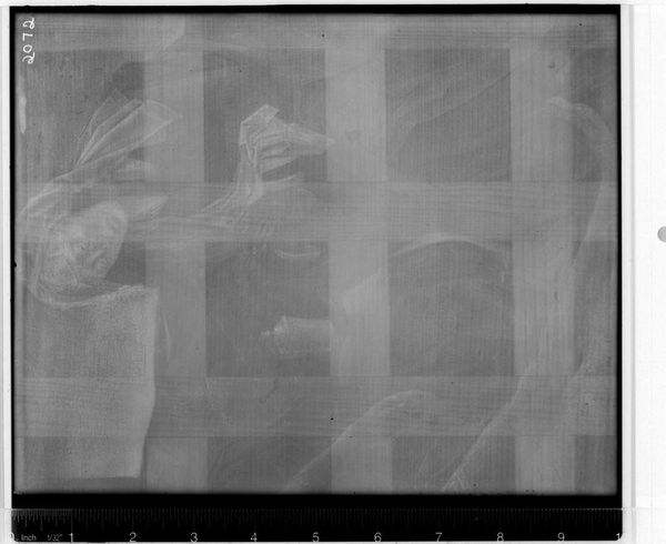 Curator: This is an X-radiograph of "Portrait of a Man," originally painted by Ferdinand Bol. What strikes you first? Editor: Ghostly and skeletal. The underpainting seems assertive, an act of revealing the hidden layers. Curator: Indeed. X-radiography allows us to see through the surface, revealing the artist's process but also revealing how it has been treated and conserved over time. Think about the cultural significance we attribute to preserving likeness. Editor: The face is quite distinct, considering. I wonder, what symbols or societal pressures informed Bol's choices in depicting this man? What narratives do we impose through our gaze? Curator: It challenges our assumptions, revealing the complexity of art and its enduring ability to spark dialogue. Editor: A compelling look beyond the surface, both literally and metaphorically.