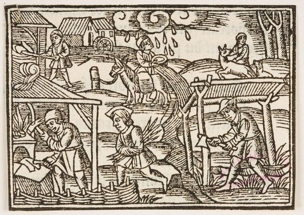 Editor: This is Illustration LXIII, by an anonymous artist. It's a captivating woodcut print. I'm struck by how it blends classical figures with, what looks like, medieval cityscapes. What do you make of the way this imagery is put together? Curator: It's fascinating, isn't it? These prints often served as visual shorthand for complex narratives, shaping public understanding of history and mythology. Notice how the figures—Juno, Helen, Aeneas, Venus, Neptune—are labelled. How might these labels guide a viewer’s interpretation? Editor: They provide immediate context, almost like captions. Were these images meant to educate or entertain? Curator: A bit of both, I think. They democratized access to classical stories but also reinforced certain societal values. Consider the role of female figures like Juno and Venus. Are they presented as powerful or simply as objects of desire? Editor: Interesting, the composition does seem to position them within a male-dominated narrative. Thank you, that gives me a lot to consider. Curator: My pleasure. It is a good example of how art can reflect and shape cultural attitudes.