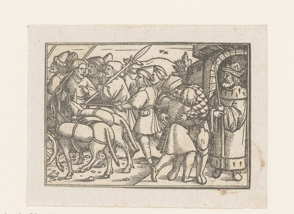 Jean Poyet rendered "Shepherds on Their Way to the Nativity from a Book of Hours" on parchment around the late 15th century. The figures of the working class are captured with a certain naturalism, their garments and worn expressions indicative of their social status. Poyet was working during a time when the divide between the wealthy elite and the working class was stark. Consider how the artist uses clothing to differentiate social classes. The clothing, or lack thereof, signify a life of manual labor versus one of leisure. How might the intended audience of this piece, likely wealthy nobles, have interpreted this depiction of the poor? The detailed architectural background contrasted with the rough clothes of the travelers offers a glimpse into the socio-economic landscape of the time. In this moment of transit, the shepherds embark upon a path both physical and spiritual. This image encapsulates an emotional and historical moment of those on the margins of society.