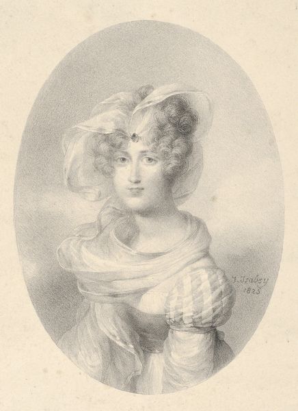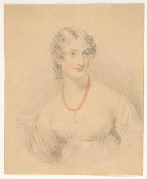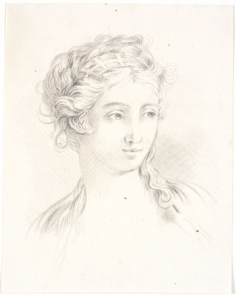 Richard Cosway captured this "Portrait of a Woman" in an oval format, using delicate strokes of graphite and watercolor. The woman's gaze draws us in, softly framed by curls and a loosely draped head covering. Her gentle features and subtle coloration lend the work an intimate quality. Cosway masterfully employs line and light to define form. Note how the graphite delicately maps the contours of her face and the soft folds of her garment. The limited palette emphasizes tonal variations, creating depth and volume with understated elegance. There is an economy of means that speaks to the formalist concern of reducing art to its essential elements. The artwork's composition, with its focus on the figure's head and shoulders, invites us to contemplate the sitter's presence. The oval format further concentrates our attention, enhancing the portrait's sense of immediacy and personal connection. This is a work of subtle beauty, where formal restraint amplifies emotional resonance.