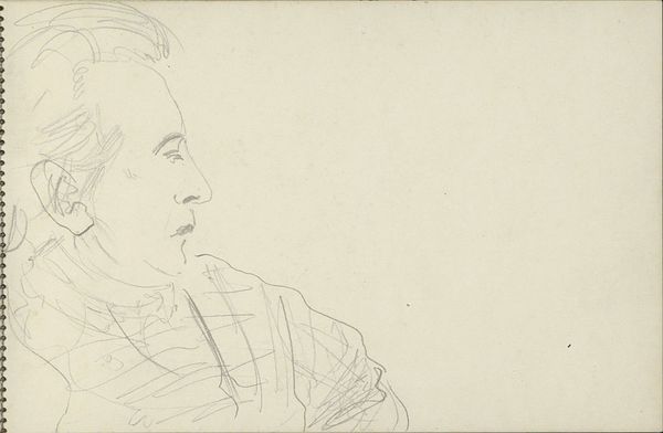 Editor: This is Henri Matisse's "Louis Aragon," a line drawing from 1943. It's striking how much personality he captures with so few strokes. What strikes me most is its apparent simplicity – what's your take? Curator: Simplicity? I see an engagement with wartime material scarcity. Paper and ink were precious, dictating a radical economy of means. Look at how Matisse transforms a basic need into an aesthetic principle. What does this reduction reveal about the social context? Editor: So, you're saying the constraints of the era shaped the work? That makes sense. The clean, almost mass-producible quality also resonates differently when thinking about accessibility to art during that period. How do you see that connecting to, say, ideas of 'high' versus 'low' art? Curator: Exactly! The linear style flattens the image, blurring the lines between fine art and something easily reproducible. Think of this as a material response: using limited resources, it hints at mass dissemination of portraiture in a time of restricted access. It democratizes the image. Editor: I hadn't considered that before, about the wartime economy! The labor-saving aspect connects to its wider consumption of image production too. Now, thinking about it less in terms of artistic genius, it's clearer that these stark, singular lines also offer broader implications tied to economic accessibility! Curator: Precisely. Understanding the 'how' is vital: How was it made, what was available, and what social needs did that serve. This approach breaks art history free from hero-worship. Editor: That is certainly an angle that reframes one’s appreciation. Looking beyond stylistic elements reveals much more to art than simply visual technique. Thank you.