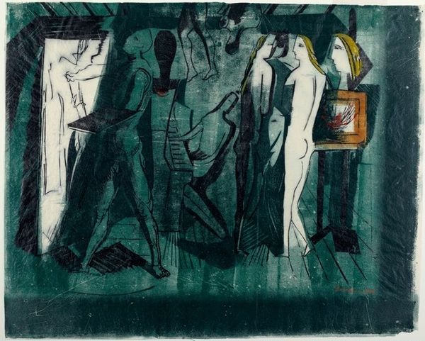 Pablo Picasso created this lithograph, "Two Women Waking Up," with ink and scraper on transfer paper. During Picasso's lifetime, artistic representations of women were often viewed through the lens of the male gaze. However, this artwork complicates that, as it captures a moment of intimacy and shared experience between women. Are they lovers? Mother and daughter? Friends? The rough lines and stark contrast in this print evoke a sense of raw emotion and vulnerability, mirroring the disoriented feeling of waking up. The distorted figures and ambiguous setting challenge traditional notions of beauty and representation, reflecting the fragmentation of identity in the modern world. Picasso invites us to contemplate the complexities of human connection and the beauty found in the imperfect and the unconventional. The women's figures seem to transcend the boundaries of time and space, reminding us of the enduring power of love and companionship in the face of life's uncertainties.
