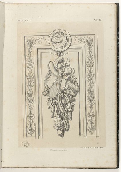 This is Carel Adolph Lion Cachet's 'Siermotief met twee herten', currently residing at the Rijksmuseum. Without a specific date, we can still contextualize Cachet's work within the late 19th and early 20th centuries. During his lifetime, Cachet experienced the rise of colonialism and significant shifts in artistic styles. His ornamental design featuring two deer reflects an interest in natural motifs, but also perhaps speaks to the cultural appropriation that was part of the colonial era, where indigenous designs were often reinterpreted through a European lens. The use of animals in art has historically symbolized various human traits and societal values. Deer often represent grace, gentleness, but also a certain vulnerability. The rendering of these animals in what appears to be a stylized, almost heraldic manner, suggests a reflection on identity. It invites us to consider how Cachet, situated within his particular time and place, negotiated his own identity in relation to broader cultural narratives and the natural world.