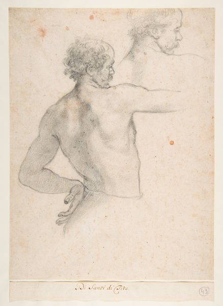 This red chalk drawing by Hendrik Krock captures a nude woman, her arms reaching out as if in flight or desperate escape, her back turned to us. The gesture of outstretched arms is ancient, resonating with the classical image of a fleeing nymph, a symbol of vulnerability and transformation. We see echoes of this motif in countless works across time, from the terrified figures in Pompeian frescoes to the dramatic poses in Renaissance paintings. Think of Botticelli's Venus, her gesture of modesty echoing a similar sense of self-awareness. The open palms suggest both an attempt to ward off danger and a plea for help, a primal scream rendered in the delicate medium of chalk. This symbol is not static; it evolves, acquiring new layers of meaning with each iteration. It speaks to our collective memory, tapping into our subconscious understanding of fear, desire, and the eternal human struggle for freedom.