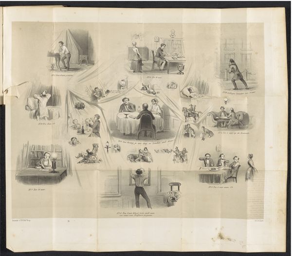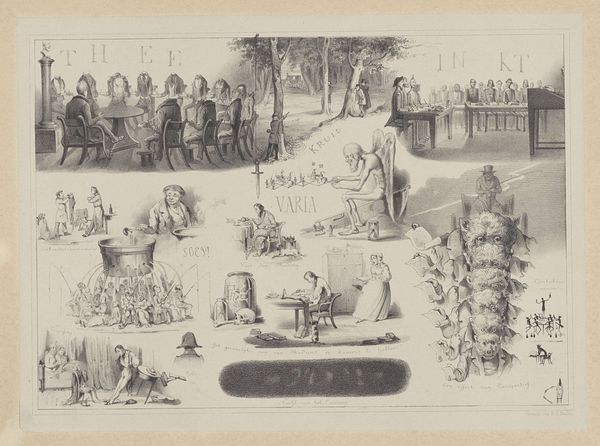 This 'Sheet from the Utrecht Student Almanac' was made in 1859, using the printmaking technique of lithography. The graphic quality owes a lot to the specific kind of stone used in lithography, which must be of a very particular geological type. The imagery is rendered on the flat surface of the stone, using greasy materials, and then chemically treated so that ink adheres only to those drawn areas. The matrix is then repeatedly inked and printed. Lithography allowed for a relatively quick and economic means of graphic reproduction, perfect for widespread dissemination. Here, the scenes of student life are rendered with a sharp eye for detail and social commentary. From the lecture hall to the late-night revelry, these images collectively paint a vivid picture of the student experience, and provide a fascinating lens through which to view the rituals of the social class at that time. By considering materials, techniques, and historical context, we can fully appreciate the significance of what may initially appear to be a simple print.