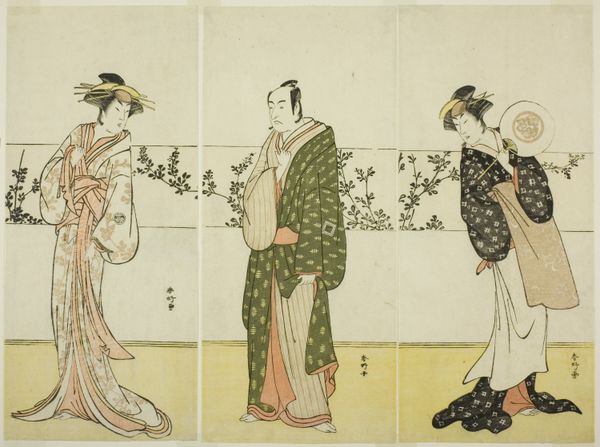 Utagawa Toyokuni I created this woodblock print triptych, "A procession of women holding shimadai decorations," sometime between the late 18th and early 19th centuries. The image provides us a window into the Edo period of Japan. At first glance, we see a formal procession, likely within the context of the imperial court or a high-ranking samurai family. The women, adorned in elaborate kimonos, carry shimadai, stands with decorations that symbolize good fortune and longevity. Toyokuni’s emphasis on the intricate patterns of the kimonos and the delicate features of the women reflects the cultural premium placed on aesthetics and refinement. Yet it’s important to acknowledge the limited roles afforded to women of this era. While this print celebrates their grace and poise, it also subtly reinforces the period's gendered expectations of women in public life. Here we see them confined to certain roles and spaces, their identities often defined by beauty and service. The print is a moment suspended in time, inviting us to reflect on the complex interplay of beauty, tradition, and gender in Japanese history.