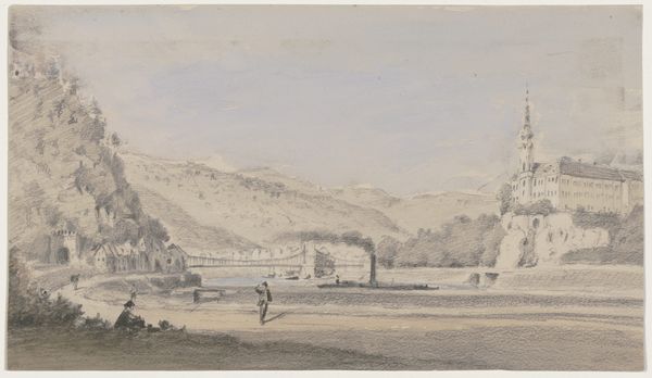 Georg Melchior Kraus created this watercolor landscape, "Saale near Schwarzburg," capturing a scene imbued with the timeless symbols of nature. Here, the river, a classical symbol of life's constant flow, dominates the foreground, its currents mirroring the ceaseless passage of time. The castle atop the hill, a motif of power and endurance, echoes the human desire to establish permanence amidst this flux. The image calls to mind similar landscapes, like those of Claude Lorrain, where nature serves as both a backdrop and a mirror to human emotion. In Kraus's work, however, there's a quieter, more introspective quality. The gentle, understated brushstrokes convey a sense of tranquility, inviting the viewer to contemplate the delicate balance between the enduring and the ephemeral. It's a subtle dance of memory and anticipation, resonating with our collective, subconscious understanding of nature's rhythms.