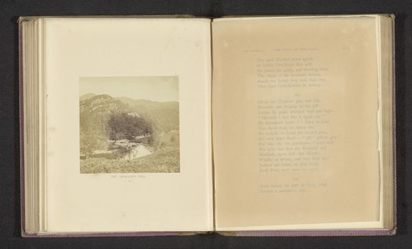 Editor: Here we have an albumen print entitled "Gezicht op de Soldier's Leap over de rivier Garry," dating from before 1868, and attributed to Peter Ewing. It feels like a scene plucked from a historical novel. What layers of meaning or stories do you see embedded within this landscape? Curator: What strikes me is how this photograph participates in the romanticising of Scottish history and identity. We must consider the political climate, particularly the rise of Scottish nationalism in the 19th century. How does this idealized landscape serve to reinforce certain power structures or narratives of resistance against, say, English domination? Editor: So the beauty of the landscape almost becomes a tool? Curator: Precisely! It's a tool used to construct a national identity. Consider also who is absent from this image. Where are the people who likely lived and worked on this land? Their absence is telling, isn't it? It creates a vision of Scotland as this pristine, untouched wilderness, which erases the realities of lived experience and labor. Do you think the ‘Soldier's Leap’ itself feeds into this narrative? Editor: That’s fascinating. It feels like it perpetuates a heroic myth. It's not just a landscape, but a stage for a certain kind of historical performance. Curator: Absolutely. And that performance is always shaped by who is telling the story, and for what purpose. The medium of photography itself, with its perceived objectivity, further reinforces this construction. Perhaps a more nuanced look is called for to better understand Scottish identity during periods of change. Editor: I see it so differently now! This conversation has broadened my understanding of how landscapes can function as powerful cultural and political statements. Curator: Indeed! Hopefully we can now both appreciate that seemingly simple representation as a multi-layered construct with profound implications.