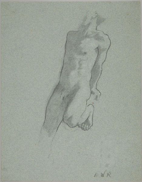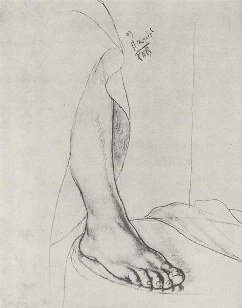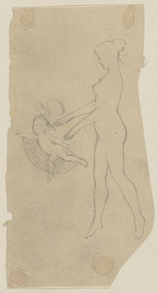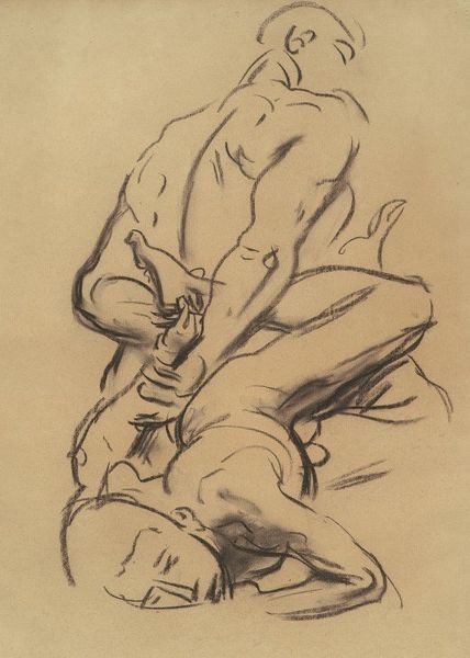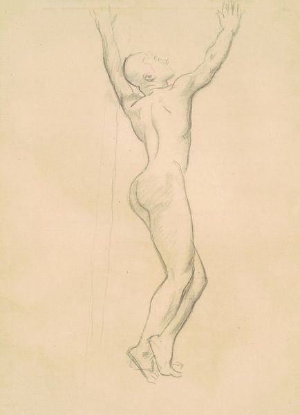Curator: This is Kuzma Petrov-Vodkin's pencil drawing, "Boy Jumping into Water," created in 1913. Editor: It's kinetic, almost chaotic, but beautiful. There's an incredible sense of freedom in this rough sketch, despite the monochrome palette. Curator: It’s part of a larger body of work that engaged with the rise of modernism and changing societal norms in pre-revolutionary Russia. We must look at this artist in the face of immense cultural change to examine his influences and reception. Editor: How might the lens of critical race theory allow for further understanding? This boy’s identity is purposefully obscured, inviting commentary on youthful expression within established social structures, gender roles, and expectations in visual culture. How much access was this child granted as agency of movement in broader European or Russian contexts at the time? Curator: Petrov-Vodkin moved among the avant-garde circles. His work reflects a broader European interest in representing the human body and movement, but he was working within specific artistic, intellectual circles that embraced themes that we still think about today when we focus on youth, such as societal expectation, beauty, and strength. The focus on musculature, and his body suspended, reminds us of other artwork traditions like academic realism but is infused with new techniques to convey motion. Editor: Indeed. What kind of sociopolitical power did representations like these possess? We are only viewing a static representation but still witness such dynamism and a sense of unbound liberation. One thinks about youth as the symbol of progress and liberation; if we put it into practice, what shifts may unfold? Curator: Those tensions—the body as a site of possibility but also subject to power—permeate a lot of modernist art from this period, challenging institutional authority. Editor: It offers us an interesting entry point for exploring art history through social theory, highlighting power dynamics in a way that’s surprisingly resonant today. It gives us insight, a place to consider intersectional analysis, and an urgent demand for political engagement with art. Curator: Ultimately, viewing the art and social history allows us a new awareness of both, enriching the modern discourse, while respecting our past traditions.