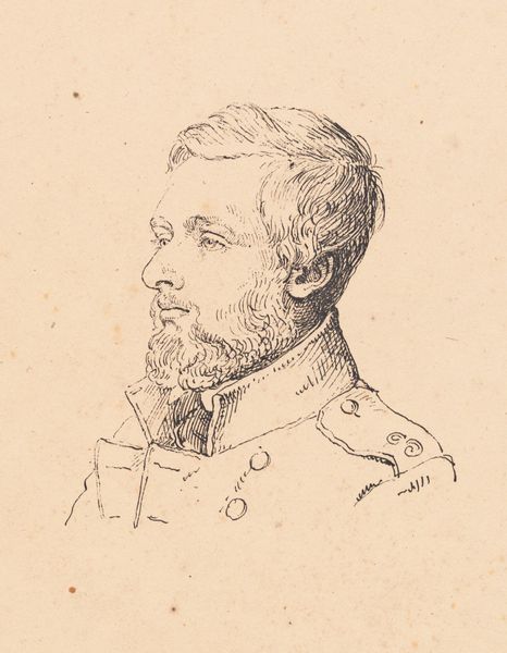 Curator: Before us, we have a drawing titled "Portrait of Mucha by Itself," created by Alphonse Mucha around 1897, rendered in ink. Editor: The linework is immediately striking—confident, precise, yet with a certain spontaneity. It’s economical but it conveys a very dignified presence. Almost a stoic air. Curator: Indeed. It’s fascinating to see Mucha, known for his decorative and sensual style in posters, create such a self-portrait. One senses a deliberate effort to present himself in a more conventional, perhaps even "academic," manner. The date also coincides with the height of his poster fame, so why this sudden change in stylistic approach? Editor: Perhaps a gesture of claiming mastery over diverse material approaches, a sort of proving to himself, and to the critics of commercial work. Look at the clothing detail, particularly that vest. So intricately patterned. He’s displaying a command over detailed depiction, a form of skilled labor often downplayed in his posters. Curator: I think you raise a valid point, though this self-portrait might function as a subtle assertion of his identity. Considering his strong advocacy for Czech nationalism, especially within the Art Nouveau movement, might he be showcasing himself as a serious, almost historical, figure within that cultural framework? Editor: It could very well be both. His Art Nouveau work was printed industrially to appeal to a wider audience but also it's clear he was someone very committed to craft traditions. In this, there's definitely a reclaiming, reminding everyone he’s grounded in the fundamentals of artistic skill and perhaps cultural pride. It seems such works also seek prestige that society does not associate with commercially reproducible artistic work. Curator: And he very well knew that the cultural status of a painter relied greatly on which forms or means they practiced, or didn’t. Seeing him present himself within such loaded historical and social contexts encourages further questions about an artist so popular in his time and yet now debated as an important figure of his time. Editor: It’s definitely made me appreciate the craftsmanship even further. Considering his body of work in posters this ink drawing is intriguing in revealing how his making negotiates skill, craft and broader historical currents.