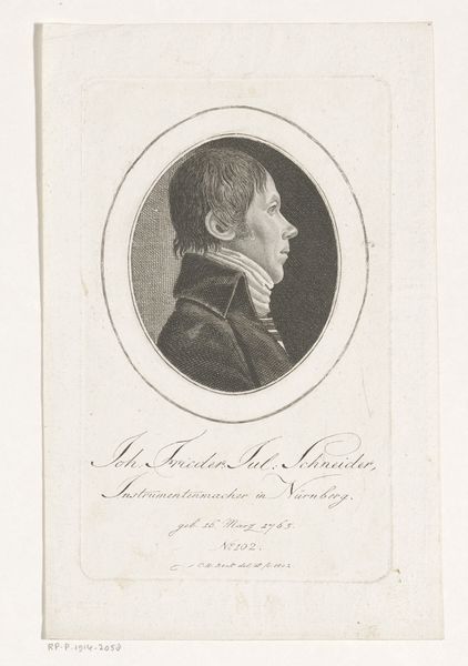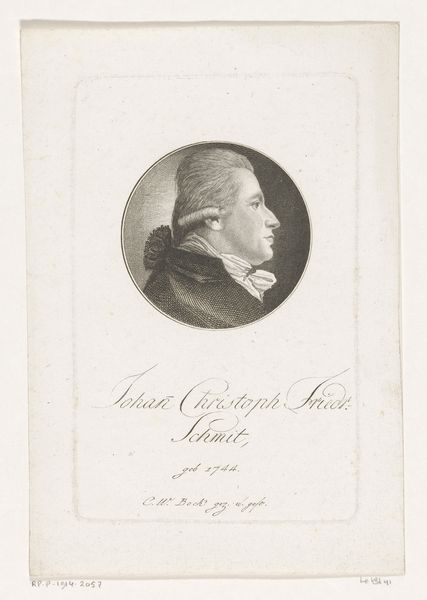 This print of Johann Christoph Jacob Cnopf was made in 1803 by Christoph-Wilhelm Bock. It’s an etching on paper, a relatively democratic medium at the time, allowing for multiple impressions. Think about the labor involved in creating an etching. The artist would have covered a metal plate with a waxy ground, then carefully scratched away the ground to expose the metal underneath. This is followed by immersing the plate in acid, which bites into the exposed lines, creating grooves. The deeper the bite, the darker the line will appear in the print. The plate is then inked, wiped clean, and pressed onto paper, transferring the image. There's a directness to the etched line, a sense of the artist's hand. Each print is an original, carrying the marks of the artist's labor, and the chemical processes used to create it. This is in contrast to the smooth surfaces often associated with high art, reminding us of the value and skill involved in printmaking as a craft.