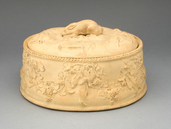 Editor: Here we have a gilded object made by Les Frères Toussaint, likely somewhere between 1770 and 1780: a Snuffbox! The Met's catalog says it’s crafted from gold and…is that a miniature landscape I see etched on top? It all feels so…elaborate and tiny! What draws your eye in this piece? Curator: Elaborate *is* the word, isn't it? It's pure Rococo decadence! This isn't just a box, it's a statement. And look closer - that's not just *any* landscape, but a genre scene. We see people, engaged in…what *are* they doing? Maybe hunting? More likely, courting and picnicking were trendy pastimes to flaunt, so it's meant to depict upper class leisure. Editor: Oh, right! It definitely has that “gilded age” vibe…only literally gilded, of course. So it's like they're turning everyday life into art, then turning that art into something functional… almost tongue-in-cheek? Curator: Precisely! Think of it like this: In a time of immense social disparity, the elite flaunted frivolous scenes from daily life as symbols of refinement and excess. How deliciously ironic that they would be contained within a container used for powdered tobacco – something meant to stimulate the senses! It shows just how much they valued appearing carefree. What do *you* make of all that detail, all those tiny lines etched in? Editor: The craftsmanship is stunning! To create such detail on such a small scale is incredible, it speaks to how valued the art was in that moment. I hadn’t really considered snuffboxes as a canvas, a showcase, beyond just utility. Curator: It makes you wonder what other seemingly mundane objects are whispering stories, doesn’t it? Perhaps everything’s a tiny stage, waiting for its moment.