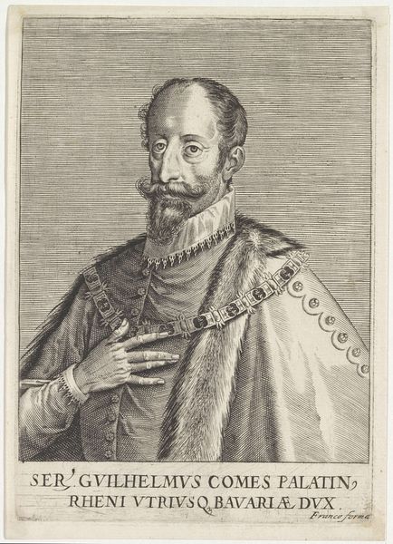 This is Giovanni Battista Bonacina's "Portret van Ermes Visconti," an engraving on paper, now at the Rijksmuseum. The composition is dominated by the oval frame, within which Visconti is depicted in meticulous detail. The texture of his armor and the ruff around his neck contrast with the smoother background curtain. Bonacina uses line and form to construct a visual hierarchy, drawing our eye first to Visconti's face, then down his armored body. The lines create shading and texture that give depth and weight to the figure, and the way the light reflects of the armor gives the image a sense of movement. The choice of an oval frame and the detailed rendering of Visconti's attire situate this portrait within a tradition of formal representation, yet the dynamic use of line also hints at a move towards more expressive modes of portraiture. The artwork challenges the fixed meanings associated with portraiture by engaging with both tradition and innovation.