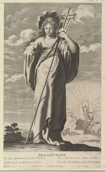 This print, Sibylle Tiburtine, was made by Gilles Rousselet in the 17th century, using engraving techniques. Look closely, and you can see a network of fine lines incised into the metal plate, capturing light and shadow. Engraving was a labor-intensive process. The artist used a tool called a burin to cut lines into a copper plate. The depth and thickness of each line determined the amount of ink it would hold, and thus the darkness of the printed mark. Rousselet would have needed immense skill and patience. He used these linear marks to define the figure, the drapery, and even the background clouds, giving the print a sense of depth and texture. The medium of printmaking also allowed Rousselet to circulate his images widely, making them accessible to a broad audience, and situating it within a growing market for art. So, by considering the materials and making of this artwork, we gain insight into the artist's skill, the cultural values of the time, and the relationship between art, labor, and commerce.