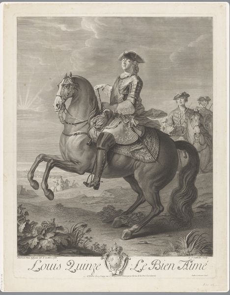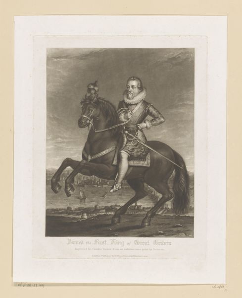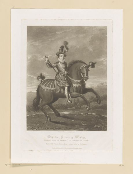 Manuel Albuerne created this portrait of General Pablo Morillo using engraving. The composition is structured around the figure of the general, centrally positioned on horseback, which immediately draws the eye. The stark contrast between light and shadow gives the image a dramatic quality, emphasizing the contours of the figures and landscape. Albuerne's technique here is a play of signs. Notice how the horse is idealized, a semiotic marker of power and grace, while the fort in the background alludes to the military campaigns led by Morillo, adding layers of cultural coding to the portrayal. The visual elements combine to project an image of authority and control. The image's formal qualities are not just aesthetic. They also reflect broader discourses around power, representation, and the construction of historical narratives. The interplay of light and shadow, combined with the symbolic elements, invites us to consider how art shapes our understanding of historical figures and events.