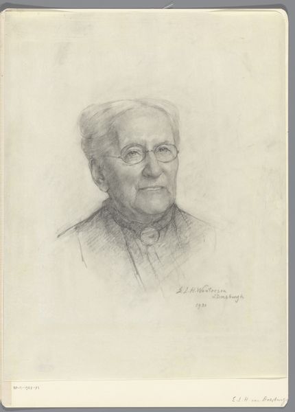 Curator: This portrait, simply titled "Robert Russa Moton," was created in 1925 by Winold Reiss. Reiss was a German-American artist who became deeply involved in documenting African American life during the Harlem Renaissance. Editor: It strikes me immediately with its incompleteness, or rather, its selective completion. The head and hand are rendered in detail with pencil, but the clothing is just sketched in outline. It feels like labor suspended or interrupted. Curator: That incompleteness is really interesting, especially given the context. Robert Russa Moton succeeded Booker T. Washington as president of Tuskegee Institute. Reiss's portraits were part of a larger movement aiming to elevate Black figures in American society, to put their likenesses into prominent display. Editor: It makes you think about the work involved, not just in the art, but in Moton's life and achievements. What did it mean to portray a leader, knowing all the structures working against him, his school, and the labor invested. Curator: Absolutely. Reiss was commissioned by Alain Locke to produce portraits for "The New Negro," a landmark anthology of African American art and literature, placing Black intellectuals, artists, and leaders into the visual culture. This portrait captures Moton's intellect; the hand on the chin implies contemplation, decision-making. Editor: And the visible pencil strokes really emphasize the artistic labor too, and that's important to remember in that moment of social elevation of certain black intellectuals – who does the actual work and how is their effort visualized, literally made visible. It highlights the material conditions of representation. Curator: The lack of adornment is striking, though. This isn’t about pomp and circumstance; it’s a direct and earnest depiction intended to convey dignity and strength, moving away from stereotypical and caricature-like imagery that was so common. Editor: Yes, and I appreciate the contrast – the heavy, dark rendering of skin tone, achieved by clearly a focused application of material. And just outline elsewhere. I’m compelled to think about artistic choices as material and political choices. Curator: Reflecting on the historical impact and social conditions helps you see how art enters a dialog in the struggle for equality and human dignity. Editor: Right, and thinking about the medium, the choices in deploying it and who is actually moving that pencil across the page. All of that is present in the image, if we really choose to see it.
