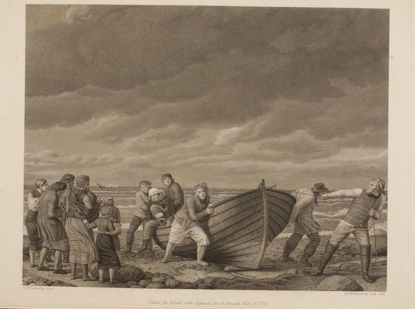 This print, "Arriverende pont met daarop mannen, vrouwen, twee koeien en een huifkar met een paard," was made by Isaac Weissenbruch sometime in the 19th century. It is a modest work, just a few inches in either direction, and made with the straightforward technique of etching. The magic of etching lies in the way a metal plate is bitten by acid, line by line, according to the artist's will. It is an indirect process that is inextricably linked to the rise of industrialization and mass media. Look closely, and you will see the artist has used tight hatching to give tone and shadow, as well as a definite sense of atmosphere. It's a fascinating translation of the world, from lived experience into repeatable image. The subject speaks to the print's role as a form of vernacular communication. The image shows a group of ordinary people, along with their livestock and cart, crossing a river by pont. The artist invites us to reflect on how the hard work and skill of image-making can elevate everyday life.