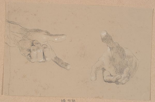 Editor: This is a fascinating sheet of studies – “Schetsblad met studies van voeten, handen en een arm” by Gaetano Gandolfi from the 17th century. It seems to be rendered in pencil and charcoal, a collection of anatomical studies. What do you see in this piece? Curator: Immediately, the isolated studies of hands, feet, and an arm suggest an engagement with classical ideals of beauty and form. The fragments feel imbued with potential narrative – consider the hand, almost reaching. Does it represent supplication? Yearning? What emotional weight do these fragmented forms carry? Editor: That’s a thought-provoking interpretation. I hadn’t considered the hand as anything more than a study in anatomy. What would be the symbolic value in it being incomplete or a fragment? Curator: The fragment, particularly in the 17th century, could represent a complex understanding of mortality, or the human struggle to achieve perfection. Academic study often focused on the mastery of details before combining them into the whole. Consider also, the gesture itself -- these gestures speak even now. Can you feel a sense of time within it? Editor: Yes, there is an interesting interplay between the timeless quality of the human form and the very specific historical context. Curator: It asks us to consider our own physical selves within a cultural memory. Each line carries not only artistic intent but also echoes of artistic traditions stretching back centuries. What do you make of that connection? Editor: That is incredibly insightful! Now I am seeing how the anatomical studies reflect layers of cultural symbolism, revealing the enduring nature of artistic ideals. Curator: Exactly, each foot, each hand, becomes more than just a physical form – they are vessels of meaning. This quick sketch opens our own memory!