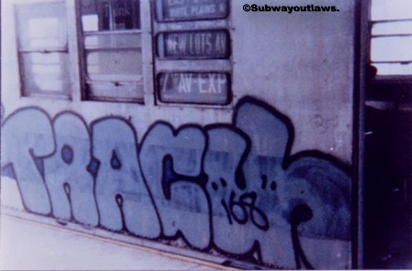 Tracy 168 created this graffiti on the side of a New York City subway car using spray paint. The use of spray paint is crucial here. It's a quintessentially modern material, born of industrial chemistry and mass production, that offers an immediacy unmatched by brush and paint. The artist’s moniker, rendered in bubble letters, is proof of a highly skilled tradition, developed in response to the gritty, urban environment and offering a creative voice to marginalized communities. This was art in motion, made for a fleeting audience of fellow commuters, an ephemeral gallery hurtling through the city. The very act of painting on a subway car transforms it, challenging the intended function of this mass transit vehicle. It becomes a canvas, and a statement. The repetitive motion, the constant movement, the daily grind, is disrupted by the artist’s intervention. In the end, appreciating a work like this means considering the context of its making, blurring the line between the act of vandalism and artistic expression.