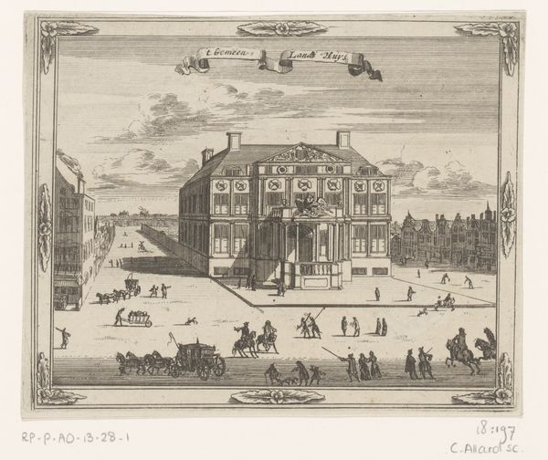 Curator: My initial reaction is how vividly this detailed yet diminutive scene portrays conflict, capturing the chaos with its multitude of tiny lines. Editor: Indeed. What we're looking at is an engraving from 1647, titled "Ildkamp mellem persere og europæere," which translates to "Fire Fight Between Persians and Europeans". This work, currently held at the SMK – Statens Museum for Kunst, comes to us from an anonymous artist. The scene is an intricate study in contrast, pitting two cultures against each other through the relatively new Baroque lens. Curator: It is more than just a clash. See the way the figures atop the buildings mirror each other; a continuous echo of struggle. One might interpret this recurring pattern to symbolize a deeper ideological battle, showcasing civilization at war with itself. Is this conflict cyclical? Inevitable? Editor: The artist does orchestrate a dynamic spatial organization. Note how diagonals slice across the scene, propelling our gaze. This active composition works in tension with the static architectural elements; those formal lines of buildings and wall appear so solid amidst all the violence. It certainly lends the whole a dramatic baroque air. Curator: And those architectural components function symbolically. The buildings—ostensibly European—tower in linear perspective; but juxtaposed against a chaotic clash happening below, aren’t we perhaps presented a not so confident view of the future of Europe in 1647? It speaks of precariousness despite the apparent power. Editor: I agree the artist has masterfully imbued these elements with connotative power; it shows the enduring possibilities latent within simple formal relationships when deployed deliberately. The high contrast is a real achievement, especially given the graphic, illustrative quality from its execution in a print form. Curator: Engravings are interesting from that cultural perspective—intended for reproduction, it allows for broad circulation. This choice of subject matter and graphic medium suggests that this 'fire fight' resonated, tapped into collective anxieties around clashing empires. Editor: Indeed. By framing the struggle through composition and contrast, the artist seems to invite the audience to interpret more than just the surface event, revealing enduring historical and psychological fault lines. Curator: Precisely, revealing both the historical and psychological landscapes of conflict.