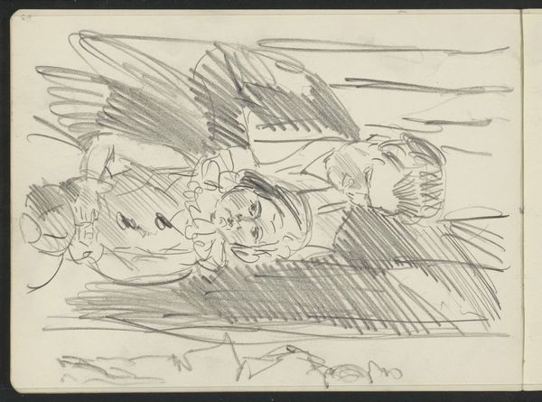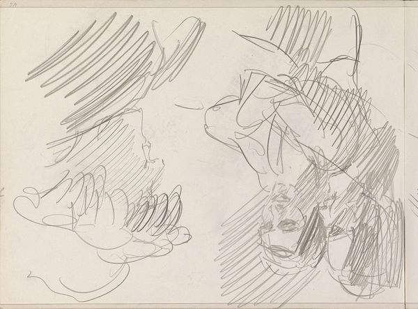 Curator: Isaac Israels made this drawing, "Interieur met zittende vrouwen, mogelijk koffiepiksters" sometime between 1886 and 1903, and it's now housed right here in the Rijksmuseum. Editor: It strikes me as incredibly intimate—almost voyeuristic. You get a real sense of candid observation, seeing these figures captured so spontaneously with what looks like charcoal on paper. Curator: The choice of medium certainly supports that impression. It is likely charcoal, perhaps even a pen and ink, which allowed for quick, iterative marks, suited to capturing fleeting moments. Note the density of the lines; the artist builds form through layers of hatching. Editor: Right, there's this beautiful roughness to the execution, but when situated socially and historically it gives me pause. The suggested title names them as "possibly coffee pickers," drawing immediate connections to labor, to colonial exploitation, and issues of gender and class. What kind of access did Israels really have to these women? How does his gaze shape our view of their work and lives? Curator: Those are pertinent questions. We need to look into Israels' context. As an artist associated with the Amsterdam Impressionism movement, his focus often lay in portraying everyday life, but often life centered in bourgeois social circles. Was he documenting the coffee production process as industry, or was it instead primarily focused on representing the picturesque elements of laborers, as so frequently happened in orientalist painting? What did commissioning or collecting such images signify during that time period? Editor: Exactly! Were these women even compensated for their representation? Did they have any say in how they were depicted, or control over the artwork that emerged? We can admire the formal qualities while simultaneously challenging the power dynamics embedded in the very act of its creation. Curator: Precisely, recognizing the work itself as material—a tangible object born from a specific historical moment. This piece of artwork has to be analyzed regarding Israels' studio practice. It’s a springboard, maybe part of his preparation for larger canvases, or merely a study in form and light. The economical usage of line, along with chiaroscuro of shadows, also underscores his engagement with materials at his disposal. Editor: Yes, those sorts of insights bring forth nuanced stories—challenging the supposed neutrality of artistic observation to unveil a layered story around art, labor, and representation. Curator: A great reminder of how crucial that socio-historical understanding remains to truly appreciating such a complex creation. Editor: Absolutely! By considering those dynamics, we’re actually deepening our understanding of what is presented here on the surface.