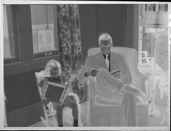 Editor: Here we have Larry Fink's "Leroy Jenkins and Sirone, Revolutionary Ensemble, New York City," a photograph taken sometime between 1972 and 1982. It’s stark and intimate at the same time. What do you see in this piece beyond just two musicians? Curator: I see a visual articulation of Black artistry in the 70s, deeply rooted in the social and political context of the time. The Revolutionary Ensemble wasn’t just a jazz group; they were sonic activists. How do you think Fink's choice of black and white photography contributes to this reading? Editor: It almost feels like it strips away the superficial, focusing on the essence of their craft and their presence. There's an austerity, maybe even a sense of struggle. Curator: Precisely. And the fact that they are in what appears to be a domestic space is crucial. It resists the commercialization of Black music, highlighting the roots of their creativity within their own community and lived experience. Fink isn't just documenting a performance; he’s capturing the intimacy and intensity of their artistic process. Consider the gazes: where are they directed, and what does that say about their relationship to their art and to the world? Editor: One is looking directly at the viewer, which feels confrontational, while the other is focused intently on his instrument. It’s like a conversation between the personal and the political. Curator: Absolutely. And their very existence as a Black avant-garde group challenged the established racial hierarchy of the art world. This photograph then becomes a document of resistance and a celebration of Black artistic innovation. What strikes you most now, after considering these ideas? Editor: It’s not just a picture of two musicians; it’s a powerful statement about identity, creativity, and resilience. It feels heavier now. Curator: Indeed. Art can be so much more when viewed through the lens of history and social justice.
