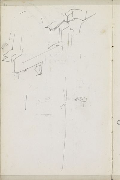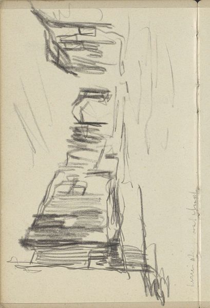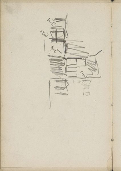 Editor: Here we have "Gezicht op bebouwing aan een weg of water," a pencil drawing by George Hendrik Breitner, dating back to about 1903. It looks like a quick sketch, almost like a study. What stands out to me is how sparse it is; it feels more like a suggestion of a place rather than a concrete depiction. What do you see in this work? Curator: That initial sparseness is key, and speaks volumes about Breitner's project. Think about the context: the rapid industrialization and urbanization of Amsterdam at the turn of the century. Breitner was deeply engaged with portraying the realities of working-class life and the changing urban landscape. How might a seemingly simple sketch like this, devoid of romanticism, actually challenge the dominant, often idealized, representations of the city? Editor: I see what you mean. Instead of grand boulevards, we get a glimpse of something more ordinary, almost transient. It does feel more real, somehow, maybe even… vulnerable? Curator: Exactly. Consider, too, the materiality. A pencil sketch, easily erased, suggests impermanence. Is Breitner perhaps commenting on the ephemeral nature of urban life, the constant cycle of building and demolition that disproportionately affects marginalized communities? How can we interpret this aesthetic choice through a lens of social critique? Editor: That makes me see it completely differently. It's not just a sketch; it's a statement about the changing urban landscape and the lives caught within it. Curator: Precisely. Art becomes a tool, not just for representation, but for social commentary, encouraging us to question whose stories are being told, and how. Editor: I never would have thought a simple drawing could hold so much weight! Thanks, that really broadened my perspective. Curator: It is in these 'simple' sketches that one sees the bedrock for radical thought and, often, for revolutionary action.