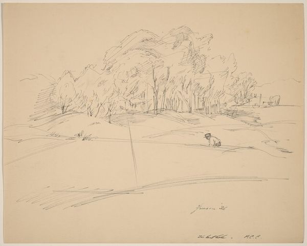 Editor: This is "Golfers," a 1936 ink drawing by Donald Carlisle Greason. It's a quick sketch, seemingly capturing a fleeting moment. What can we unpack from the simplicity of the ink and the almost unfinished nature of the piece? Curator: What interests me most here is the democratizing effect of the medium. Ink drawings, traditionally studies for more ‘finished’ works, here become the artwork itself. How does the ready availability and portability of ink and paper shape artistic expression and reach within society? Editor: So, you're suggesting the medium allowed the artist to capture something genuine, without the constraints of more laborious methods? Curator: Exactly. Consider the social context of the 1930s. The accessibility of this medium allowed art to become integrated with daily life and document leisure activities like golf. It moves artmaking away from exclusive studios to a more quotidian existence. Is the artwork accessible not just thematically, but also in the materiality? Editor: I see what you mean. The deliberate sketchiness removes some of the elitism, right? Anyone could conceivably try this. It's not intimidating. Curator: Precisely. And this ease of creation perhaps speaks to the growing accessibility of leisure time for certain segments of society during the interwar period. We have to ask, for whom was leisure time and materials easily available, and how does that class dynamic impact our reading of the drawing? Editor: So, it’s not just a picture of golfers; it is indicative of social shifts around leisure and consumption made accessible to some through new, easily attained materials and practices? Curator: Indeed! The artwork transcends mere representation, becoming a tangible product reflective of broader socio-economic landscapes. Editor: That's a completely fresh perspective for me. Looking at the materials used gives "Golfers" so much added historical weight. Curator: The physical making always reflects social relations and available materials. Focusing on them offers so much insight.