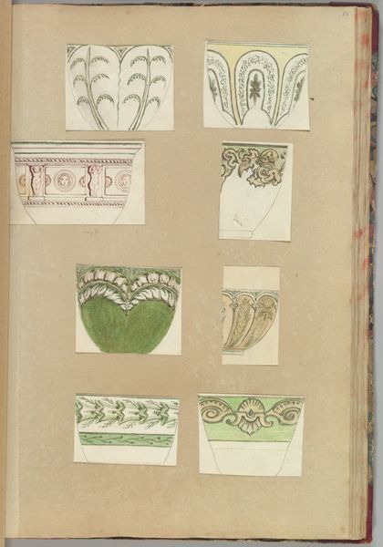 Editor: This is Alfred Henry Forrester's "Seven Designs for Decorated Cups," dating from between 1845 and 1855. It's a watercolor and print on paper. There’s a very quaint feel to them, almost like illustrations from a children’s book. How do you interpret this work beyond its surface appeal? Curator: These designs are indeed charming, but let's consider the broader socio-economic context. Mid-19th century Britain saw a rise in industrial production coupled with an emerging middle class eager to display its newfound status. How might these designs reflect or perhaps even subvert Victorian notions of domesticity and taste? Are they aspirational, or do they critique the commodification of everyday life? Editor: That’s interesting. I hadn't thought about them in terms of class. They seemed very…well, decorative, not necessarily making a statement. But now that you mention it, the variety of the designs almost suggests an attempt to appeal to different consumer preferences, doesn’t it? Curator: Exactly. Consider also the historical baggage embedded in the material itself. Porcelain, particularly fine china, has long been associated with wealth and colonial exploitation. Does Forrester's choice to depict these designs on paper, using relatively accessible media like watercolor, hint at a democratization of art and design, a subtle challenge to the established order? Editor: That’s a really important point – connecting the design itself to the history of the materials it references. I’m starting to see these cups as more than just pretty designs. They're little documents of a changing society. Curator: Precisely! By engaging with the object's history and its intended audience, we can excavate deeper layers of meaning and appreciate the artwork as a product and reflection of its time. Editor: This has definitely given me a new perspective. I’ll never look at a teacup the same way again! Curator: Nor will I. These everyday objects hold more stories than we often imagine.