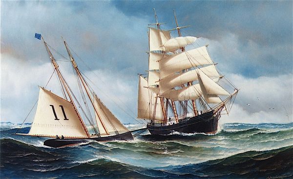 Jacob Petersen painted these two Danish frigates in a storm, signaling to each other, using oil on canvas. The artwork evokes the maritime power of Denmark. The precise dating of the painting remains uncertain, but we can connect the depicted naval activity with the history of Danish maritime culture, one deeply intertwined with trade, exploration, and military prowess. The painting's visual codes of tall ships and stormy seas create a sense of awe, but also vulnerability. We can interpret this as a reflection on Denmark's complex relationship with the sea. Petersen's work invites us to consider the social and political dimensions of maritime representation. Historians employ a variety of resources, including naval records, trade statistics, and social histories, to better understand this painting. The meaning of this artwork is contingent on its socio-political and institutional context, deepening our understanding of the period.