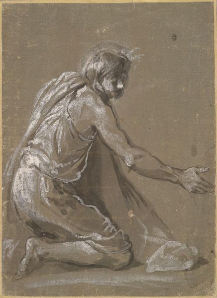 Editor: Here we have Sigismondo Caula's "Two Seated Bearded Male Figures," dating roughly from 1637 to 1713. It's a charcoal drawing with such a striking, almost melancholic mood. What do you see in this piece, especially regarding its imagery? Curator: I'm drawn to the visual language of the drapery. The way the hooded figure almost recedes into shadow evokes a sense of sorrow or contemplation. Think of the tradition of depicting figures in mourning throughout art history, consider how the veil or shroud operates as both concealment and revelation. Do you see any echoes of similar imagery here? Editor: I do. The shrouded figure reminds me of depictions of grief or even religious penitence. The older figure is more exposed but not necessarily in a positive way – the way he sits makes him seem pensive. Is there any religious element, maybe, in how they are rendered? Curator: Possibly. The placement of the figures could reference many narratives: teacher and disciple, or even an Old Testament prophet. Notice how the light falls – selectively illuminating the textured face of the exposed figure and contrasting so starkly with the obscuring fabric around the other figure. This duality carries weight; it speaks of the interplay between knowledge and concealment, revelation and mystery. Do you get a sense of dialogue – a symbolic discourse occurring between these two figures, visually represented? Editor: Yes, I see it now. One illuminated by wisdom, the other cloaked in it... or hidden from it. Thanks. I learned so much. Curator: Indeed! Symbolism gives old paintings renewed relevance in each passing era, shaping their reception and creating dynamic cultural memory.