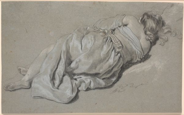 Henry Wyatt made this delicate drawing of a seated man’s legs with graphite on paper. He has employed a range of techniques to capture the human form. Lightly sketched outlines define the shape, while subtle shading models the contours of the muscles and fabric. See how the artist has blended the graphite to create smooth transitions between light and shadow, particularly on the thighs and knees, giving a sense of depth and volume. Hatching and cross-hatching – the use of fine, parallel lines – add texture and detail, creating a sense of realism. The drawing demonstrates not only technical skill but also a deep understanding of anatomy and form. The ability to capture the human body accurately was essential for artists in this period, as they sought to depict both the ideal and the real. Wyatt's work is a reminder of the value placed on skilled handcraft in the visual arts, and how this craft can be used to create work of great beauty.