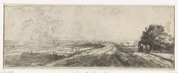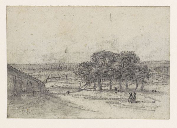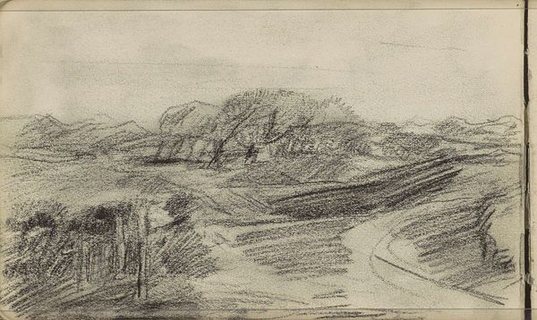 Editor: We’re looking at Paul Signac's 1885 drawing, "Rue Vercingétorix." It’s done in pencil and charcoal, creating this incredibly somber cityscape. The heavy shading gives it a feeling of a really overcast day, or maybe even just a melancholic mood. What jumps out at you when you look at it? Curator: Oh, isn't it delicious? Like a whispered secret from a forgotten corner of Paris. The way Signac teases out the light with those charcoal strokes, it’s like he’s trying to catch a feeling more than a fact. Does it remind you of that feeling when the streetlights just come on, that brief hush before the city really wakes up? Editor: Yes! That liminal space, exactly. It's funny because his later pointillist works are so vibrant. Curator: Absolutely! But think about what he was doing here: wrestling with Impressionism, pushing it, questioning it. He is thinking about that specific space that has some of Haussmann’s Paris, but is still gritty, on the edge. What's interesting is that the single figure crossing the street reminds me of a solitary note in a musical composition. Editor: I see what you mean – grounding the scene, but also emphasizing the emptiness. Almost daring to walk this world. Curator: Exactly! Now, isn't that a beautiful defiance? Think, too, of the political turmoil of the period. This street becomes more than just a street, doesn’t it? Editor: It does. I hadn't really considered the context, I was mostly focused on the sort of hazy atmosphere he creates. Curator: And isn’t that just perfect? The beauty is in finding your own resonance, isn't it? It’s not always about the why, sometimes it’s just about how a piece *feels*. That little shiver it sends down your spine. That’s the magic, my friend. Editor: I completely agree. I will look at all works through that lens, too, not just facts and theory, but how they stir you.
