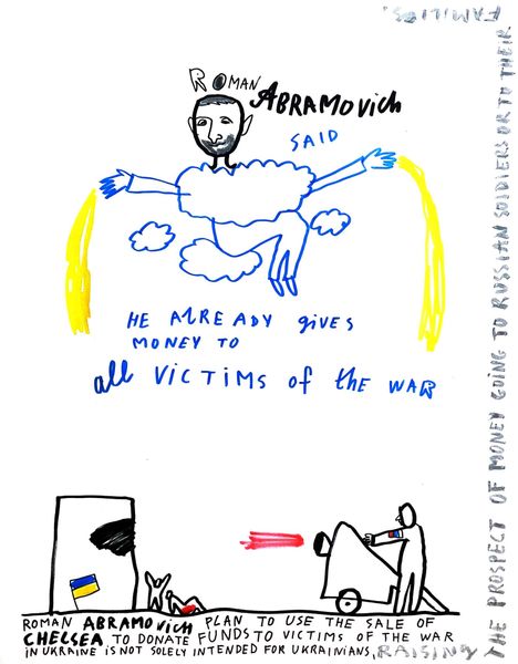 Alevtyna Kakhidze created this drawing, titled 'Evening', on February 16, 2022. Its deceptively simple style belies a complex commentary on the imminence of war. Kakhidze, born in 1973, is a Ukrainian artist whose work often reflects the socio-political realities of her homeland. This piece, made just days before the full-scale Russian invasion, carries the weight of impending conflict. The childlike rendering of a person walking a dog under a seemingly peaceful sky contrasts sharply with the text, "I just want to say: If it is no war today, do not mean it is no war". The drawing captures a moment of eerie calm before the storm. It speaks to the psychological tension of living under the shadow of potential violence, where normalcy is fragile and the future uncertain. It's an expression of the artist's personal anxiety and a broader societal apprehension. The artwork serves as a poignant reminder that peace is not merely the absence of war, but an active and continuous effort. The simplicity of the drawing underscores the profound unease felt during that evening.