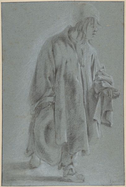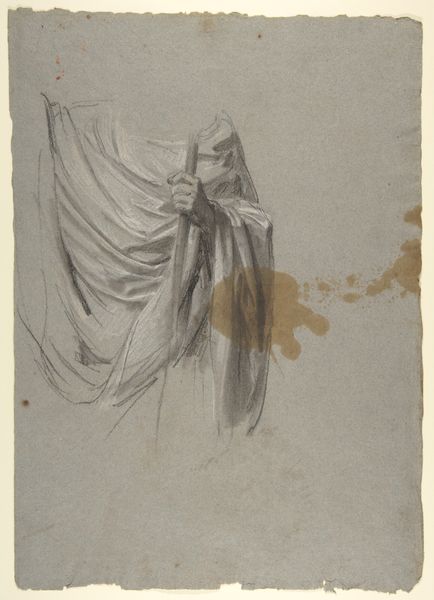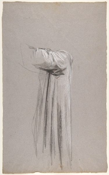 Isidore Pils made this drapery study in 1858, using black and white chalk on paper. It's a preparatory sketch for a mural, focusing on the folds and shadows of a cleric’s robes. While the subject may seem traditional, Pils's choice of chalk is interesting. It's a readily available, relatively inexpensive material, and the effects he achieves are dependent on a close relationship between hand, eye, and material. Look closely, and you can see how the texture of the paper itself becomes integral to the image. The grain creates a subtle visual buzz, contrasting with the smooth, shadowed areas, and enlivening the highlights on the fabric. This kind of study was crucial for academic painters like Pils. It allowed them to master the fall of light and shadow, and it demonstrates the sheer labor and skill involved in creating these kinds of representational images. It reminds us that even seemingly straightforward images are the result of material decisions and hard work, effectively blurring the lines between fine art and the skilled crafts.