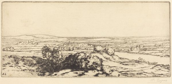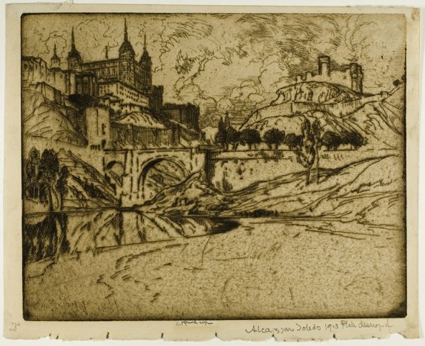 Joseph Pennell made this etching of Rouen from Bon Secours sometime between 1881 and 1926, a flurry of lines brought together to capture a place. There’s an energy to his touch that feels so immediate, like he’s wrestling with the scene before him. Looking at the piece, you can almost feel the scratch of the needle against the plate, each line a tiny decision, a response to the world. It's mostly monochromatic, but the depth comes from the density and direction of the lines. Notice how the dense, dark strokes create the hillside on the left, while the lighter, more scattered marks define the sky. It's like he's building the image from the ground up, letting the process guide him. Think of Piranesi’s architectural prints, but more intimate and personal, a testament to the enduring allure of process and the conversation between artists across time.