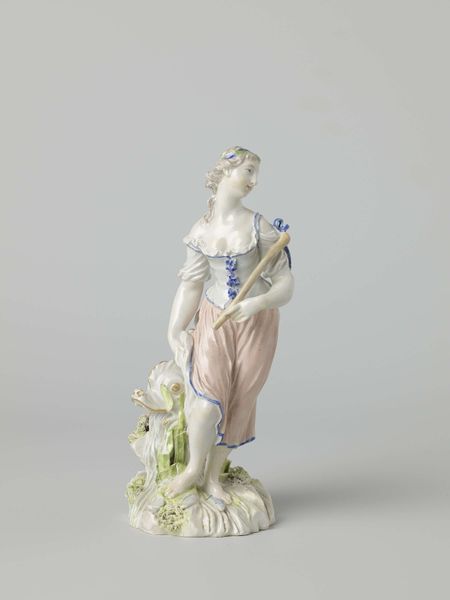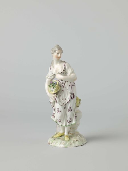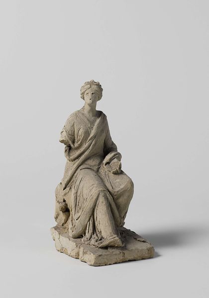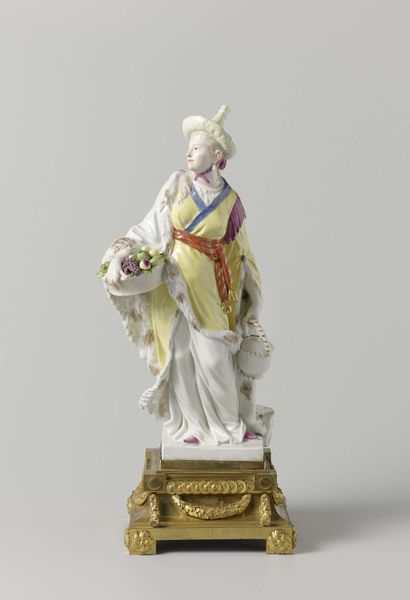 This painted wood sculpture is a model of a figurehead, an ornament fixed at the prow of a ship. The figure is reminiscent of Pomona, the Roman goddess of fruit trees, gardens, and orchards, and it is this identity that the artist would have wanted to invoke to inspire confidence in the ship's journey. Pomona is almost always portrayed with a selection of seasonal fruits, as she is here, connecting her to abundance, harvest, and well-being. The style of dress, with robes draped over one shoulder, is also reminiscent of classical antiquity, and it calls on a tradition of both Roman and Greek imagery. The symbolic connection to the classical world is not accidental; it is an attempt to imbue the ship with a rich heritage, projecting an aura of safety and prosperity. The figure embodies the hope for safe passage and fruitful ventures, reflecting the deep-seated human desire for control over the uncertainties of the sea. This archetype of a protective, abundant deity touches the subconscious, offering solace and reassurance on the perilous journey. Pomona continues to reappear in various forms, her essence echoing through different cultures and epochs.