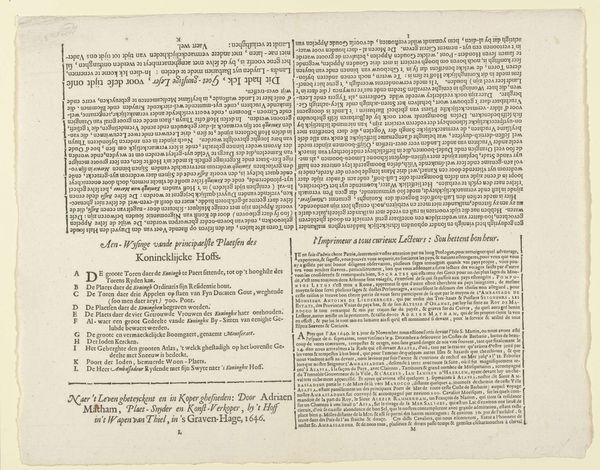 This is the second text sheet of the 'Map of the Siege of Gennep', made in Amsterdam in 1641 by Claes Jansz. Visscher. It was made during a time of great political and religious upheaval in Europe. This text, printed in Dutch, offers a detailed account of the siege, highlighting military strategies, troop movements, and the overall course of events. The text emphasizes the importance of the siege within the context of the Eighty Years' War. As such, it played a significant role in shaping public opinion and national identity during a time of conflict. In studying a work like this, it's vital to look at it in the context of the growth of the printing press, which allowed the rapid distribution of information. We can also learn about the details of military engagements in 17th century Europe. By examining archival sources, we can better understand how these images shaped public perceptions of war.
