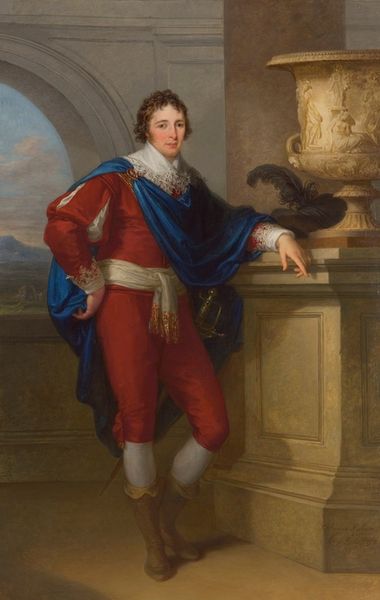 Joshua Reynolds painted this portrait of Francis Basset, later 1st Baron de Dunstanville and Basset, capturing the complexities of identity and status in 18th-century England. During this era, portraiture was often used as a tool to assert power and lineage. Reynolds, as a leading portrait painter, navigated the delicate balance of portraying individual likeness while adhering to societal expectations. Basset is depicted wearing academic robes, signaling intellectual achievement and social standing. Yet, the subtle nuances in his expression and posture hint at the weight of expectation placed on him as a member of the aristocracy. Consider, if you will, how Reynolds uses composition and color to convey Basset's identity. The landscape in the background serves not just as scenery, but also to place Basset within his ancestral lands, reinforcing his connection to the land and his lineage. The vibrant red of his suit contrasts with the darker hues of his robe, adding a sense of vitality and youthful energy to the portrait. Ultimately, this is an exploration of identity, class, and the expectations of belonging to a particular stratum of society.