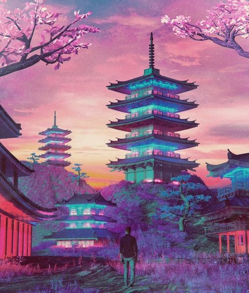 This digital artwork, "Hue Shift," was created by Beeple, an American artist known for his foray into NFTs and digital art. The artwork is made entirely in the digital realm, with Beeple utilizing software and rendering techniques to achieve its surreal aesthetic. The image blends the familiar and the fantastical. A pagoda and other architectural elements evoke traditional Asian landscapes, but are rendered in vibrant, otherworldly hues of pink and purple. The composition, while seemingly serene, is actually a digital composite built from multiple sources. This highlights a key aspect of Beeple's process: the ability to endlessly manipulate, remix, and generate images. "Hue Shift" reflects a new type of artistic labor, one defined by digital fluency, mass media imagery, and the accelerated pace of online culture. It blurs the line between handcrafted and machine-made, raising questions about the value of digital artistry in a world oversaturated with images.
