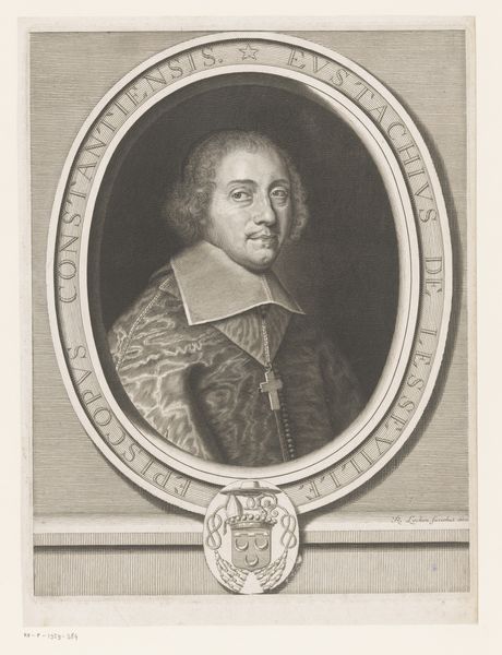 Jean Lenfant created this print of François-Théodore de Nesmond sometime between 1615 and 1674. De Nesmond, a member of the French upper class during the 17th century, is framed by an oval border. The inscription that encircles him indicates that he was the presiding judge of the high court of France. During this era, portraiture served as a powerful tool to reinforce social hierarchies and project idealized images of power. De Nesmond is depicted wearing the garb appropriate to his station. It's worth noting the absence of women and people of color in positions of power during this time. This portrait, while seemingly a straightforward depiction of a man in authority, also speaks volumes about the societal structures that elevated certain identities while marginalizing others. Though the visual cues of status are plain to see, it's important to consider who is included and excluded from this picture of power.