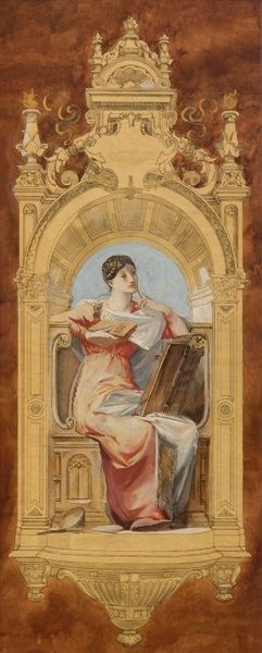 Luc-Olivier Merson created this painting called Les Sciences with watercolor and gouache on paper. The muted palette of browns, blues, and golds gives the piece a serene, contemplative quality. A female figure sits enthroned within an elaborate architectural frame, suggesting a classical allegory. The architectural elements, with their repetitive forms and symmetrical arrangement, create a sense of order. Yet, this order is disrupted by the figure’s pose. Her contemplative gesture and the scientific instruments at her feet—a globe and an astrolabe—introduce a dynamic tension between established knowledge and the quest for new understanding. The painting's semiotic system invites us to decode the cultural values and intellectual concerns of its time. Ultimately, the tension between order and dynamism underscores the notion that science is not just a body of knowledge but a continuous process of inquiry, challenging fixed meanings.