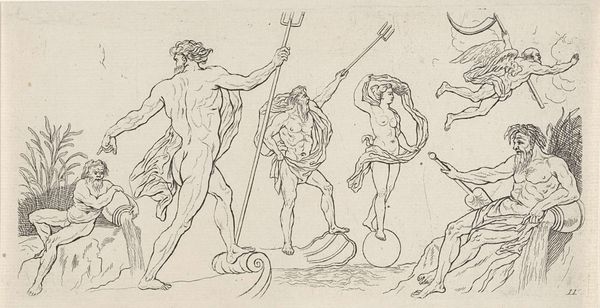 Curator: Here we have an 18th-century drawing, simply titled, "Group of Nude Figures," an intriguing piece residing here at the Metropolitan Museum of Art. Editor: Wow, there's a strange almost unsettling stillness to it, isn’t there? Like classical statues caught between poses, about to move. Is it just me, or is there also this slight echo of drama—melodrama, even—in the way the figures relate to each other? Curator: Note how the anonymous artist utilizes primarily pencil, rendering the human form with precision but also a softness, which might contribute to the slightly ambiguous feel you're picking up. The gray paper certainly influences the overall tonality and affects the reading of light and shadow. Observe the classical contrapposto present in several figures. Editor: The cloth draping feels heavy, like it’s been through a Greek tragedy laundry cycle. And something about the woman’s stance, holding that giant club or branch... Is she like, an ancient proto-weightlifter, bored in between sets, discussing metaphysics with her gym bros? Curator: One could suggest these are studies after antique sculptures, perhaps undertaken in an academic setting. See the emphasis on musculature and idealized forms typical of that period’s artistic training. The relatively muted emotional expression across their faces pushes it more towards formal exercise than narrative drama, doesn't it? Editor: Sure, but even the most stoic form hides a feeling! The subtle, you know, yearning for something. That reaching hand on the right, for instance. It feels almost charged. Also, can we talk about the complete lack of background? It amplifies that feeling of isolated figures, you know, on some existential stage. Curator: Certainly, that negative space heightens the focus on the figures themselves. We could also consider how the subtle variations in shading, the faint hatching, work to delineate depth, and volume despite a relative flatness of composition. Editor: This reminds me of art school figure drawing. Endless hours in some dusty studio, and afterwards grabbing a pizza talking about the subtle power dynamics, that show in every gesture. And even these characters on paper carry all that too! Curator: Indeed, reflecting on it now, it offers not only a look into classical form, but something about timeless human connections. Editor: It’s that strange mix of grand ambition, combined with really simple everyday stuff... always what art school –and great art is all about, don't you think?